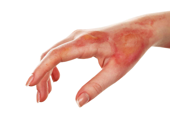 Damage to the skin or deeper tissues caused by sun, hot liquids, fire, electricity or chemicals. The degree of severity of most burns is based on the size and depth of the burn. Electrical burns, however, are more difficult to diagnose because they're capable of causing significant injury beneath the skin without showing any signs of damage on the surface. Symptoms range from a feeling of minor discomfort to a life-threatening emergency, depending on the size and depth (degree) of the burn. Sunburn and small scalds can often be treated at home. Deep or widespread burns and chemical or electrical burns need immediate medical care, often at specialised burn units.